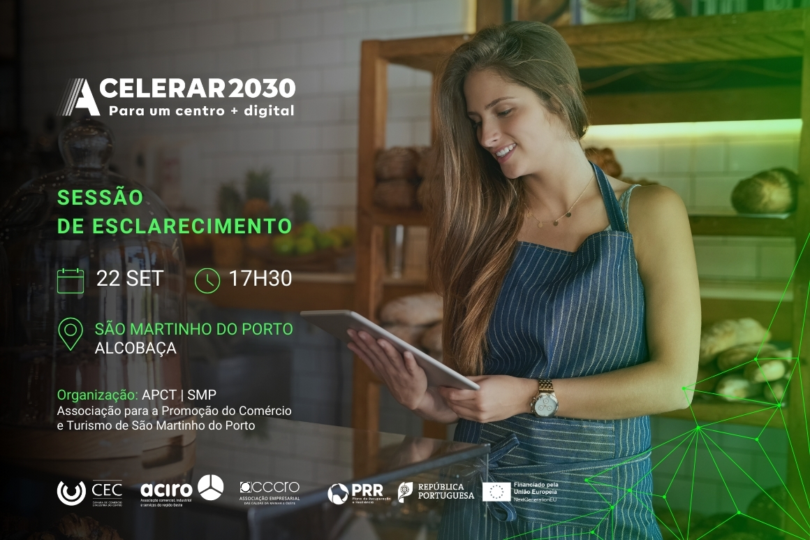 A representação esteve a cargo dos técnicos de 𝐭𝐫𝐚𝐧𝐬𝐢𝐜̧𝐚̃𝐨 𝐝𝐢𝐠𝐢𝐭𝐚𝐥 da 𝐀𝐂𝐂𝐂𝐑𝐎 – Associação Empresarial das Caldas da Rainha e Oeste, 𝐌𝐚𝐫𝐠𝐚𝐫𝐢𝐝𝐚 𝐂𝐚𝐞𝐭𝐚𝐧𝐨 e 𝐍𝐞𝐥𝐬𝐨𝐧 𝐑𝐢𝐛𝐞𝐢𝐫𝐨, que apresentaram o projeto 𝐀𝐜𝐞𝐥𝐞𝐫𝐚𝐫 2030 – 𝐏𝐚𝐫𝐚 𝐮𝐦 𝐂𝐞𝐧𝐭𝐫𝐨 + 𝐃𝐢𝐠𝐢𝐭𝐚𝐥, dinamizando também um momento de esclarecimento de dúvidas junto dos comerciantes locais.